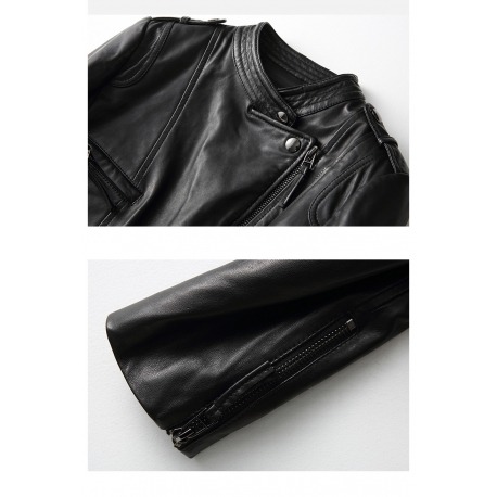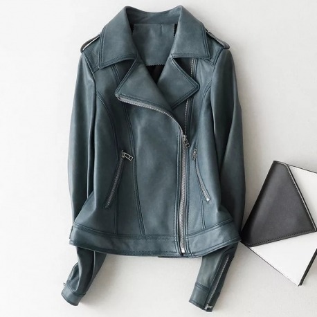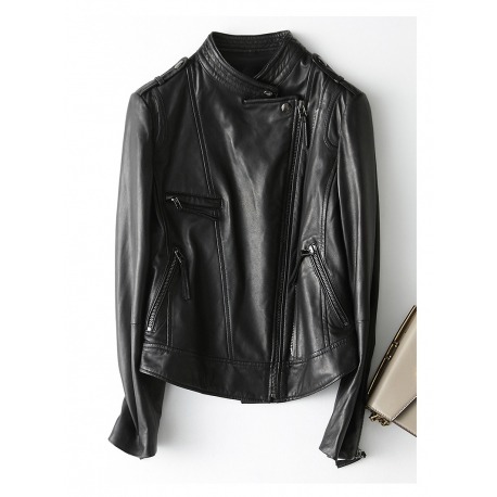 Elegantní dámská kožená bunda  Dopřejte si nadčasový styl s touto dámskou bundou Materiál: skopovice Střih: lehce vypasovaný, podtrhuje postavu Zapínání: klasický zip po celé délce Detaily: decentní límeček, dvě praktické kapsy na zip, ozdobné švy pro elegantní vzhled...