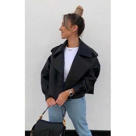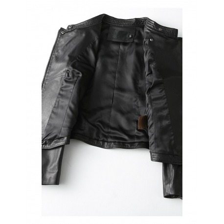 Krátká dámská kožená bunda se strukturou a výrazným límcem  Stylová bunda, která dodá každému outfitu šmrnc. Originální kombinace klasického biker střihu s elegantními detaily a pružným zakončením v pase, díky kterému krásně sedí na postavě. Střih: kratší, lehce do pasu, zvýrazňuje...