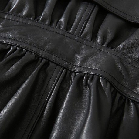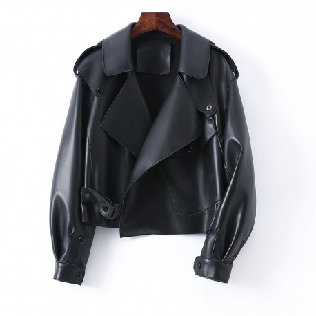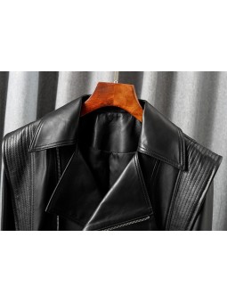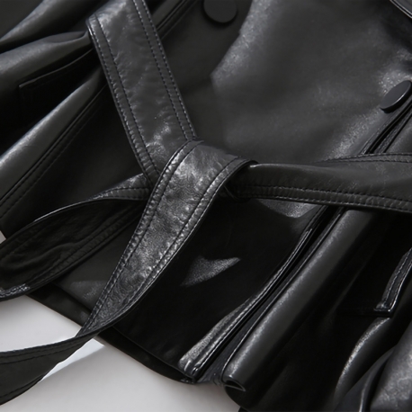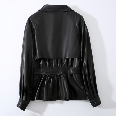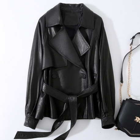 Dámský kožený kabátek s páskem  Stylový kabátek z  kůže v elegantní černé nebo béžové barvě dodá vašemu outfitu šmrnc a nadčasovou eleganci. Materiál: skopovice Střih: lehce projmutý, s páskem v pase pro zvýraznění siluety Zapínání: dvojřadé knoflíky pro klasický trenchcoat vzhled...