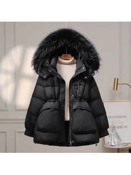 Dámská zimní bunda s kapucí z pravé kožešiny Stylová a elegantní zimní bunda, která skvěle zahřeje i v chladnějším počasí. Je vyrobena z lesklého polyesterového materiálu, který odpuzuje vítr a vlhkost. Výplň z kvalitního kachního peří zaručuje lehkost a výborné izolační vlastnosti. Kapuce je...
