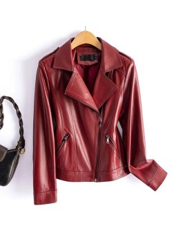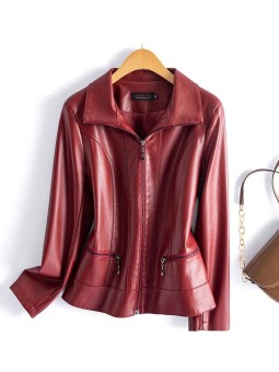 Elegantní dámská kožená bunda  Dopřejte si nadčasový styl s touto dámskou bundou Materiál: skopovice Střih: lehce vypasovaný, podtrhuje postavu Zapínání: klasický zip po celé délce Detaily: decentní límeček, dvě praktické kapsy na zip, ozdobné švy pro elegantní vzhled...