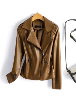 Stylová dámská kožená bunda v oblíbeném biker střihu. Karamelově hnědá barva nebo černá barva dodají každému outfitu moderní a nadčasový vzhled. Bunda je vyrobena z pravé kůže - skopovice, která je měkká, příjemná na dotek a přizpůsobí se postavě. Detaily produktu: Materiál: pravá kůže...