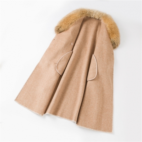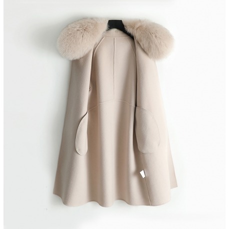 Dámský oversize kabátek z ovčí vlny s límcem z lišky Stylový dámský kabátek z ovčí vlny v moderním oversize střihu, který je nejen pohodlný, ale i mimořádně elegantní. Dominantou je bohatý límec z pravé liščí kožešiny, který dodává kabátku luxusní vzhled a chrání před chladem. Kabátek je k...