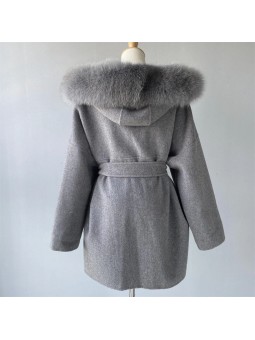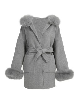 Dámský kašmírový kabát s kapucí orámovanou kožešinou z lišky Od modelu Claire se liší, že má navíc kožešinu na rukávech Elegantní oversize kabát, který spojuje luxus, pohodlí a nadčasový styl. Vyrobený z jemného kašmíru a kvalitní vlny, nabízí nejen hřejivost, ale i dokonalou měkkost na dotek....