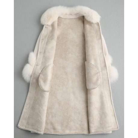 Dámský kabát ze skopovice s liščí kožešinou a ozdobným páskem Luxusní dámský kabát vyrobený z jemné skopovice je skvělou volbou pro ženy, které hledají eleganci spojenou s praktičností. Bohatá liščí kožešina na límci a kapsách dodává modelu noblesu a nadčasový vzhled, zatímco pásek s dekorativní...