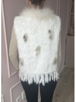 Kožešinová vesta z králičí kožešiny – pletená, s mývalem Luxusní dámská kožešinová vesta vyrobená z jemné pletené králičí kožešiny. Výstřih a přední lem jsou zdobeny bohatou kožešinou z mývala, která dodává modelu elegantní vzhled a příjemný objem. Materiál: 100 % přírodní králičí kožešina,...