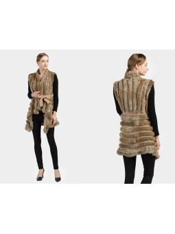 Kožešinová vesta s páskem z králičí kožešiny Stylová dámská kožešinová vesta vyrobená z jemné králičí kožešiny, která je našitá na textilní podklad. Díky tomu je vesta lehká, pohodlná a snadno se nosí i kombinuje s dalšími kousky oblečení. Součástí je pásek, kterým lze zvýraznit pas a upravit si...