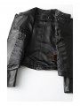Detaily: zipy na rukávech, ozdobné klopy, ramenní patky