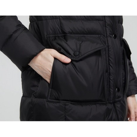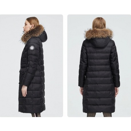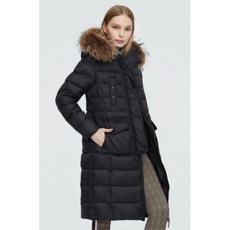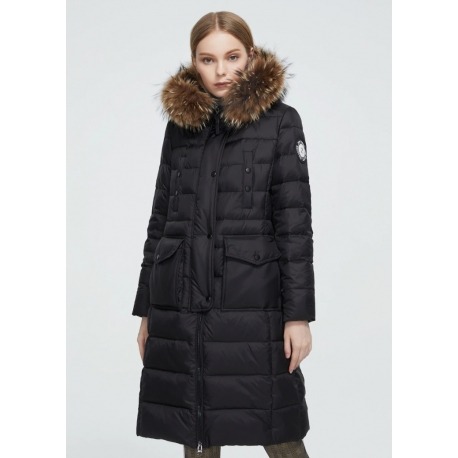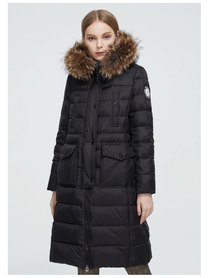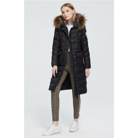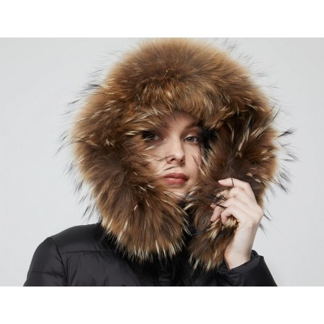 Stylová dlouhá zimní bunda, která spojuje eleganci s maximálním komfortem i v těch nejchladnějších dnech. Bunda má nadýchaný střih, jemně projmutou siluetu a je doplněna luxusním límcem z pravé kožešiny mývala, který dodává celému modelu exkluzivní vzhled.