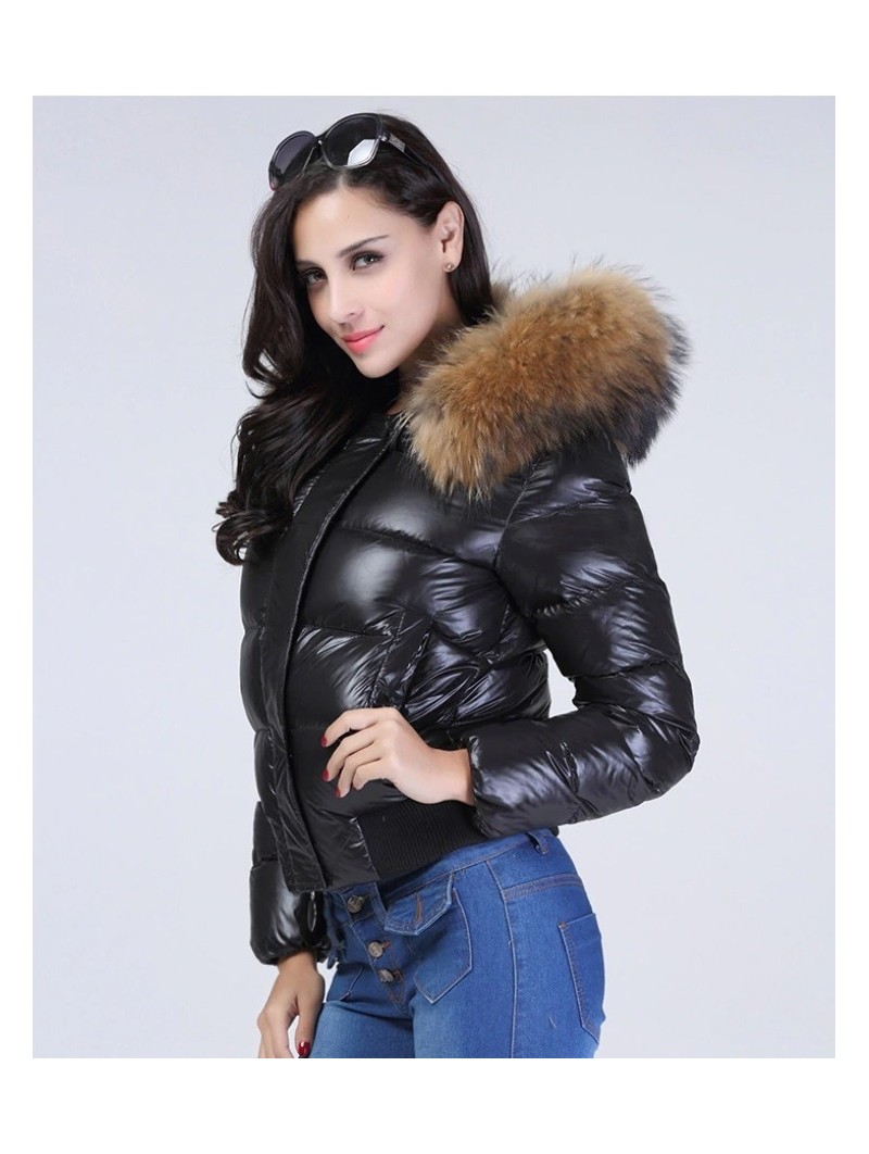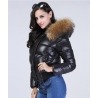 Dámská zimní bunda s kapucí z pravé kožešiny
