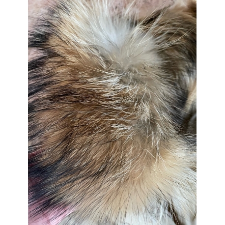 Kapuce je lemována luxusním pravým límcem z mývala, který dodává bundě výjimečný vzhled. Bunda je spíše tenčí, ideální pro přechodné období nebo mírnější zimu.