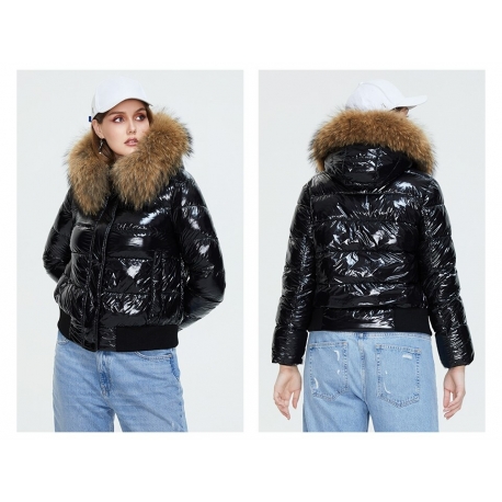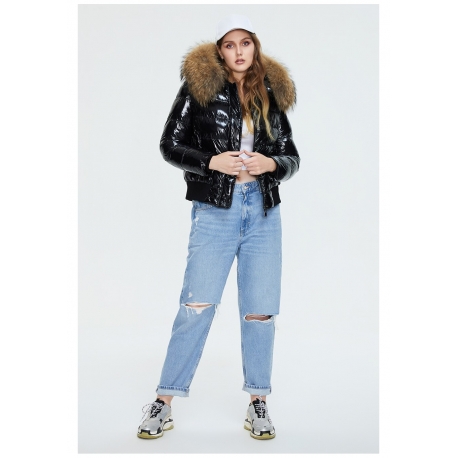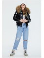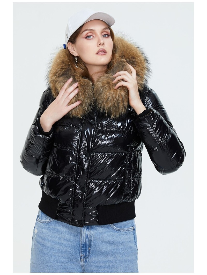 Výrazným prvkem je bohatý límec z mývala, který dodává bundě luxusní vzhled a extra ochranu před zimou.