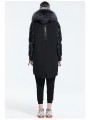 Luxusní kapuci zdobí bohatý kožešinový límec z pravého mývala, který dodává bundě elegantní a výrazný vzhled.