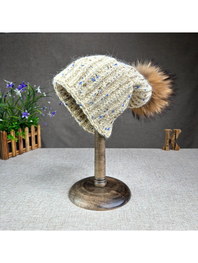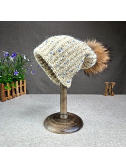 Trendy pletená čepice z jemné vlněné směsi s krásnou, nadýchanou bambulí z pravé mývalí kožešiny. Bambule je odepínací, takže čepici lze snadno vyprat nebo nosit i bez ní.