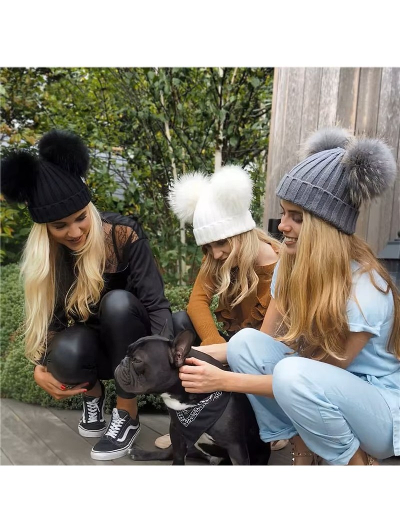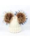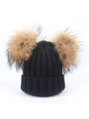 Stylová zimní čepice s hravým designem dvou nadýchaných bambulí z pravé lišky nebo mývala. Pletený materiál z kombinace akrylu a bavlny je měkký, hřejivý a příjemný na dotek. Skvěle drží tvar a zahřeje i v chladných dnech.