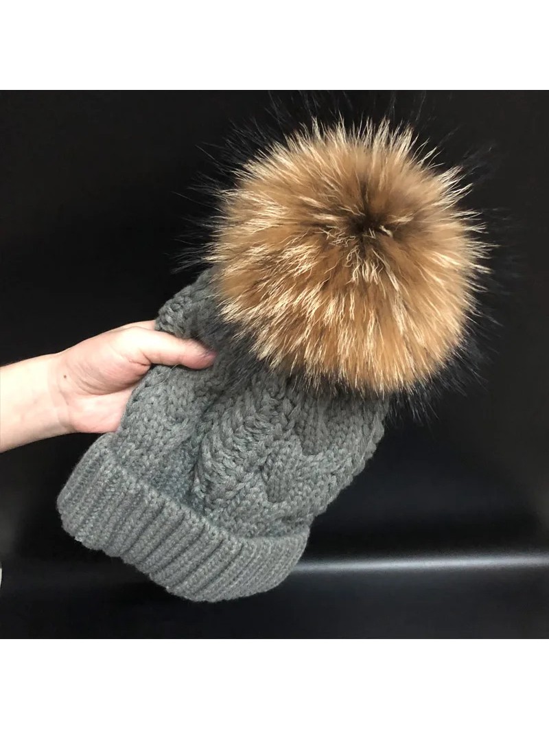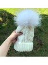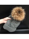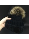 Dámská zimní čepice s bambulí z pravé kožešiny mývala