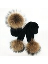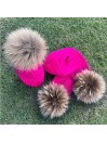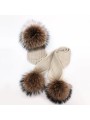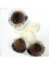 Pletená čepice s velkou bambulí z mývalí kožešiny