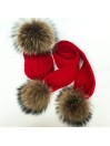 Ladící pletená šála se dvěma kožešinovými bambulemi