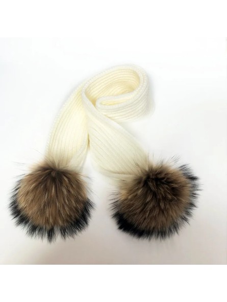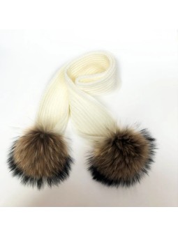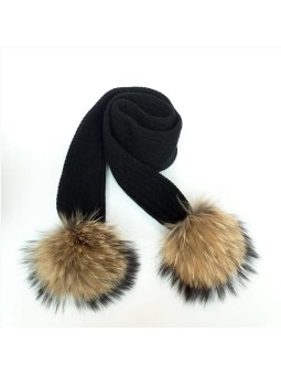 Stylová a hřejivá pletená šála s luxusními bambulemi z pravé mývalí kožešiny. Vyrobená z měkkého, pružného úpletu, který příjemně zahřeje a doplní každý zimní outfit.