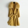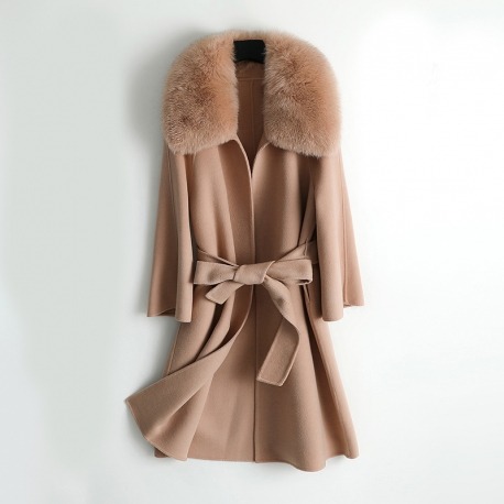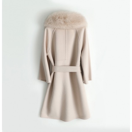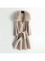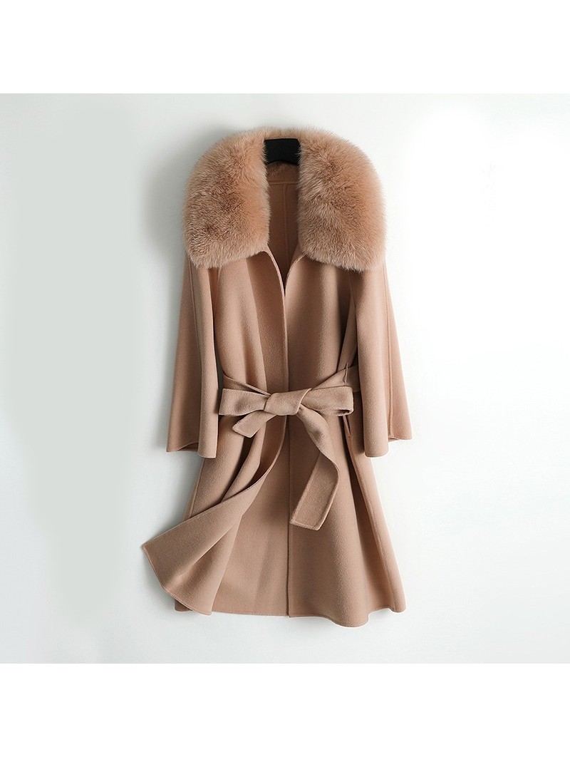 Luxusní dámský kabát z vysoce kvalitní ovčí vlny, který vyniká nadčasovým střihem a elegantními detaily. Dominantou modelu je bohatý límec z pravé liščí kožešiny, jenž působí exkluzivně a zároveň poskytuje příjemné teplo i v chladných dnech. Kabát se zavazuje v pase na pásek, který krásně zvýrazní ženskou siluetu.