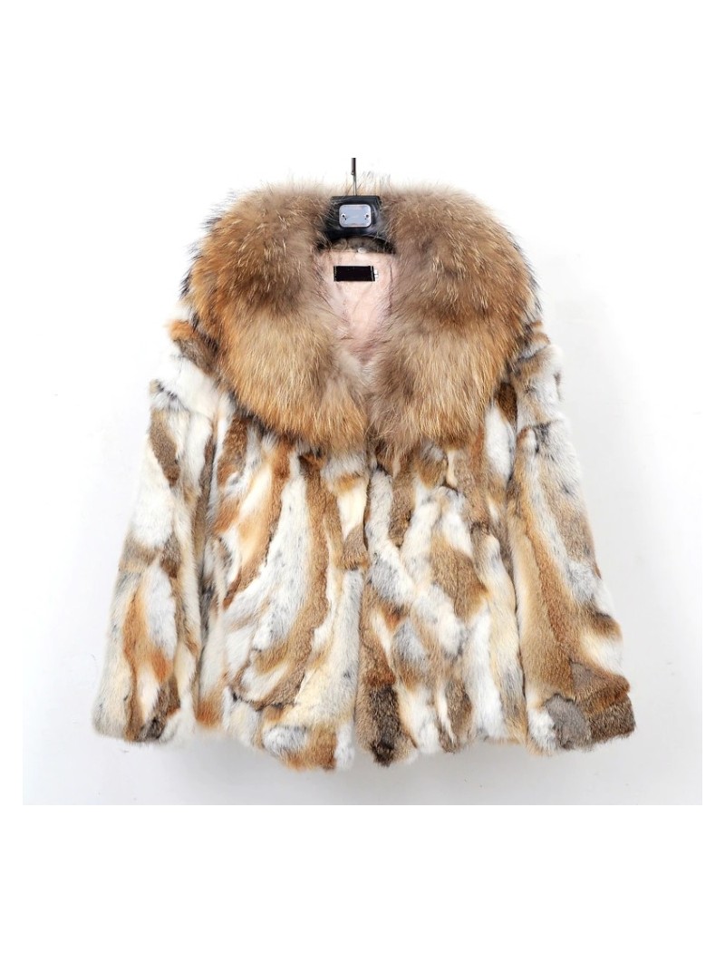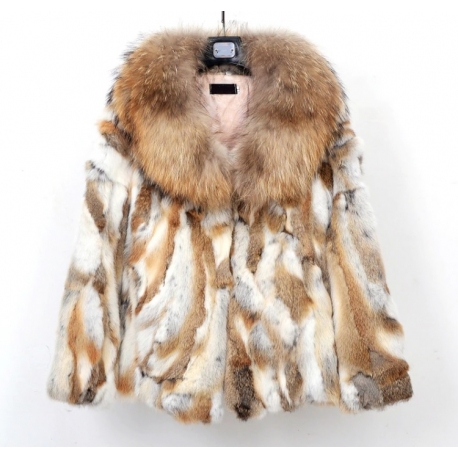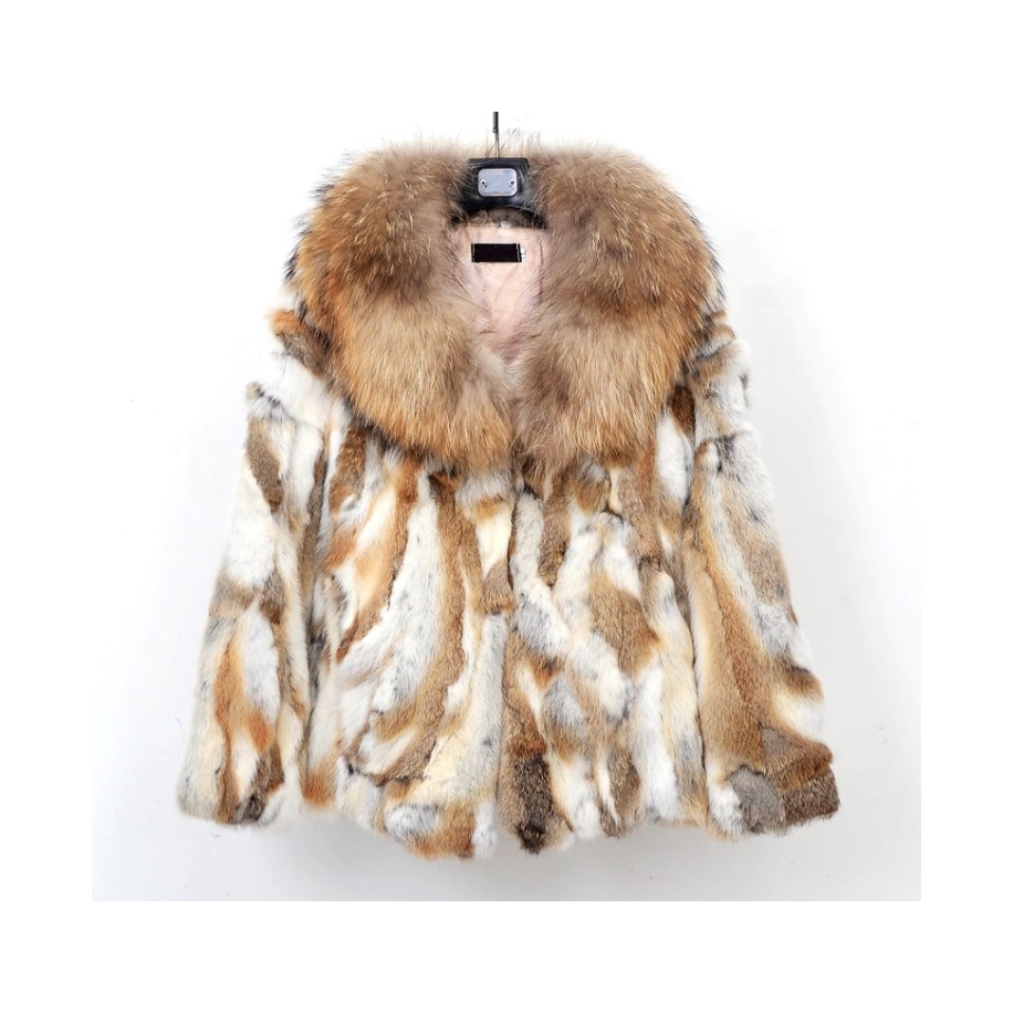 Luxusní kožešinový kabát z králičí kožešiny s límcem z mývala