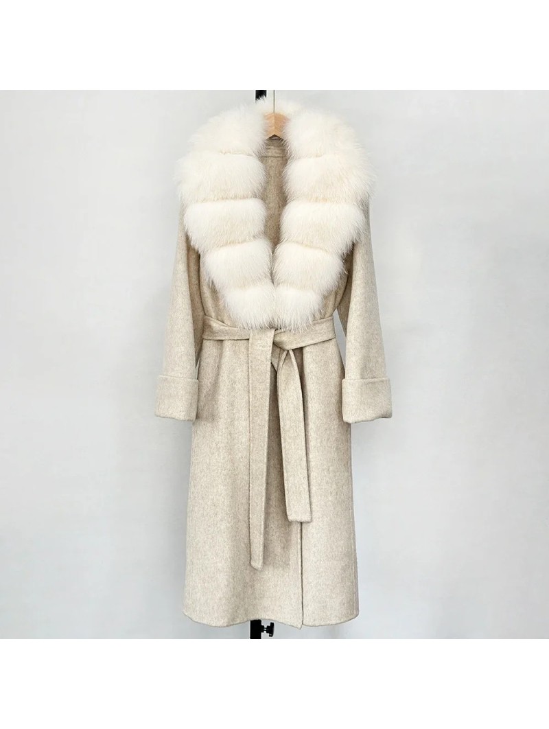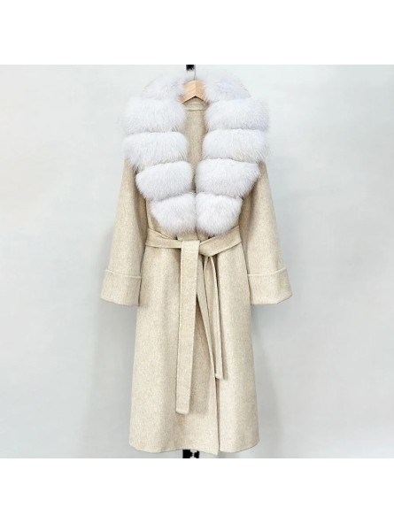 Dominantním prvkem je bohatý límec z pravé kožešiny – možnost výběru mezi kožešinou z lišky nebo mývala v několika barevných variantách. Kožešinový límec dodává kabátu noblesní vzhled a zároveň poskytuje mimořádné teplo.