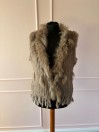 Luxusní dámská kožešinová vesta vyrobená z jemné pletené králičí kožešiny. Výstřih a přední lem jsou zdobeny bohatou kožešinou z mývala, která dodává modelu elegantní vzhled a příjemný objem.
