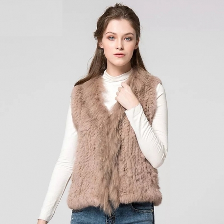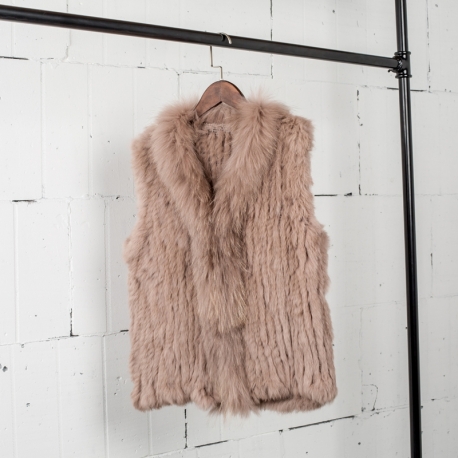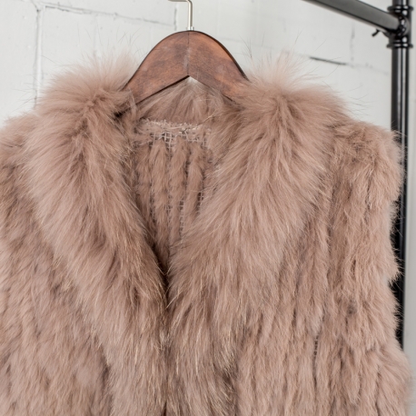 Kožešinová vesta z králičí kožešiny – pletená, s mývalem