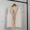 Luxusní dámská kožešinová vesta vyrobená z jemné pletené králičí kožešiny. Výstřih a přední lem jsou zdobeny bohatou kožešinou z mývala, která dodává modelu elegantní vzhled a příjemný objem.