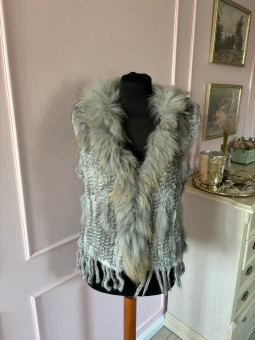 Kožešinová vesta z králičí kožešiny – pletená, s mývalem