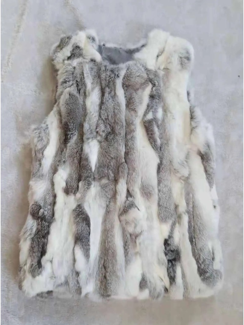 Kožešinová vesta z králíka – vícebarevná, zapínání na háčky